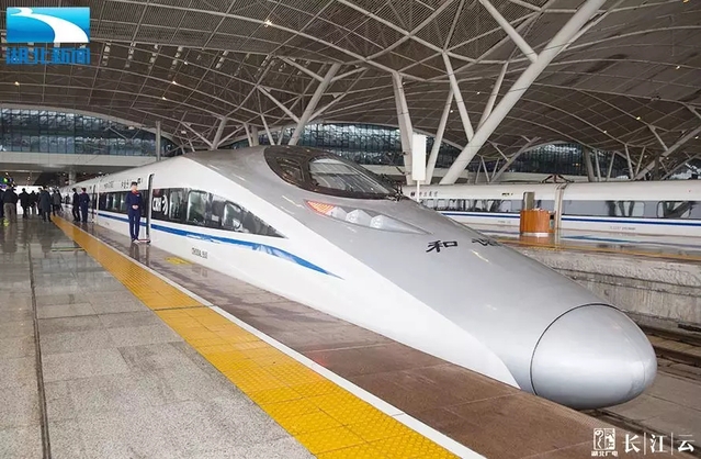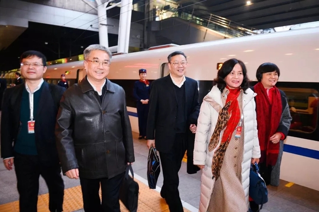 委员们乘坐的G516次列车出发。(图片:湖北电视台新闻频道)