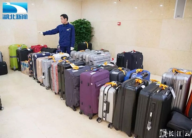 委员们托运的行李已归置整齐。(图片:湖北电视台新闻频道)