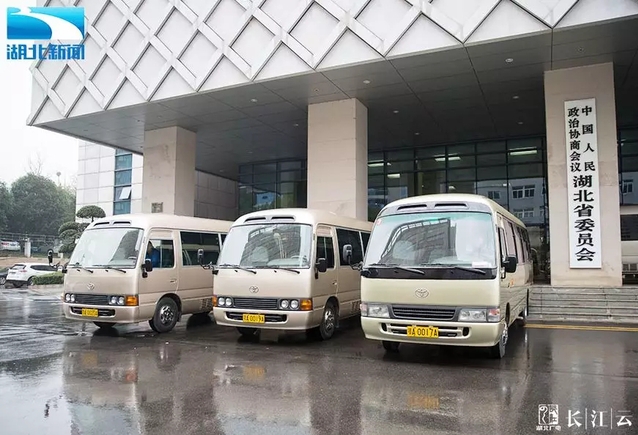 省政协门口的大巴整装待发(图片:湖北电视台新闻频道)