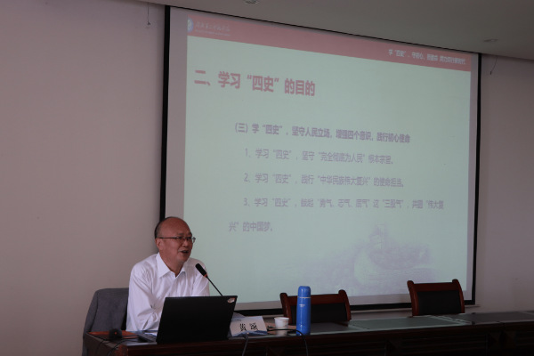 开班仪式结束后,黄颂作了题为《学四史、守初心、担使命,同力同行新时代》专题讲座。他结合自身学习“四史”若干思考深入浅出地讲解了“四史”的基本内容、学习“四史”的目的、“新四史”的主线及其与马克思主义基本原理的关系及学习“四史”的重点等。