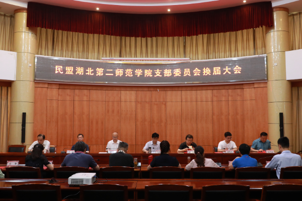 本网讯 (融媒体记者 张震 王晨)5月31日上午,民盟湖北第二师范学院支部委员会在行政楼一号会议室召开换届大会。民盟省委副主委叶春松、组织部副部长李坤,我校党委常委、副校长、统战部部长黄颂,统战部常务副部长方喻、副部长汪平出席会议。民盟湖北第二师范学院支部委员会主委杨坤道教授主持会议。