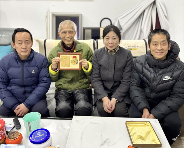 到达左兵家中后,镇方松一行郑重地将民进湖北省委会颁发的“光荣在会40年”荣誉纪念章转交给左兵。随后,大家与这位 90 岁高龄的老会员促膝长谈,细致询问他的健康状况和生活情况,认真倾听他的心声与诉求。镇方松代表学校统战部,向为民进事业奉献多年的左兵致以节日问候与新春祝福,同时希望左老保重身体,继续关心支持民进二师支部的发展。